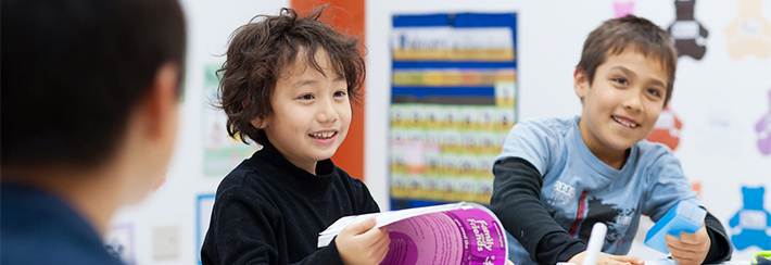 小学校に入っても、幼児期からインターナショナル・スクールで育成した英語の4技能は簡単に失われません。「小学生アドバンス・クラス」の効率的な継続学習で、高い英語力とスタディ・スキルを引き続き伸ばして行きます。当スクールの卒業生を対象にしたプログラムですが、ネイティブ・レベルの会話力、読解力を持つ帰国子女のお子様にも参加頂けます。「会話クラス」と「文法クラス」があり、学習年数と習熟度に応じて数レベルをご用意。様々な表現と語彙を増やし、文法と文章の書き方を学びながら総合的にスキルを高めていくために、なるべく2クラスの受講をお勧めします。